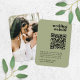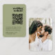 A simple, stylish wedding RSVP QR code photo enclosure card in a modern minimalist design style. Featuring vintage retro typography on a olive green background, this elegant card adds a sleek and sophisticated touch to your wedding stationery suite. The text can be easily personalized with your names, wedding website, scannable QR code, and custom message to keep your guests informed and connected. The full image on the reverse is for illustration purposes to be replaced with your own photo. Perfect for modern couples who value both style and convenience, this enclosure card helps guests quickly access your wedding website (on sites like The Knot, Zola or With Joy) for RSVPs, travel details, and more. Designed to complement any wedding theme, it’s a timeless and refined way to share important information about your upcoming special day.