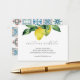 Delight your guests with a glimpse of your special day through our enchanting wedding website enclosure cards. Adorned with a beautiful top border of watercolor lemons and elegantly scripted in calligraphy, these cards are a perfect blend of charm and sophistication. Easily personalize them with your details using our convenient template fields. The reverse side unveils a captivating Amalfi tile pattern, rendered in tranquil shades of blue and warm rust, evoking the essence of Italy. To explore our full Italy-themed wedding stationery suite and add more touches of this romantic style to your celebration, visit www.zazzle.com/dotellabelle.