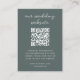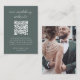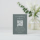 Simple, stylish wedding website photo enclosure card in a modern minimalist design style with an elegant natural script typography in classic white on a forest green gray background, with an informal handwriting style font. The design can easily be personalized with your title, wedding website, scannable QR code, message and photo for a unique one of a kind wedding design to keep your friends and family up to date about your upcoming special day. The image shown is for illustration purposes only to be replaced with your own photo. The placeholder image is of a happy couple. If you need any help customizing this product, please contact me using the message button and I'll be happy to help.