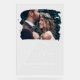 This wedding welcome sign exudes a modern and elegant design with a romantic touch. Created on clear acrylic, it radiates a sleek and contemporary charm. The top half features a captivating photograph of the couple, adding a personal and intimate essence to the design. The text on the sign is inscribed in a blend of graceful cursive and serif fonts, creating a sophisticated and stylish allure. The white lettering contrasts beautifully against the transparent backdrop, harmonizing with other white wedding elements such as flowing curtains, the bride's veil, and pristine columns. This enchanting and visually appealing decor combines modern materials with a deeply personal and heartfelt touch, making it a perfect emblem of love and unity for any wedding celebration.