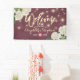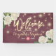 Wedding Welcome Banner Templates - Elegant White lovely Watercolor Hydrangea Flowers and String Lights on Burgundy Red Background.