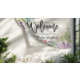Wedding Welcome Banner Templates - Elegant lovely Watercolor Succulent Plants on White Rustic Wood Background.
