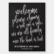 An elegant cutting edge wedding sign features the text "Welcome, please choose a seat, not a side; we are all family once the knot is tied" in an extroverted script font; the brush texture adds a spontaneous and playful feeling. The background color can be personalized according to your needs and preferences; please get in touch with me if you have any special requests. PLEASE NOTE: For assistance on orders, shipping, product information, etc., contact Zazzle Customer Care directly https://help.zazzle.com/hc/en-us/articles/221463567-How-Do-I-Contact-Zazzle-Customer-Support-.