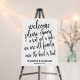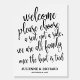 An elegant cutting edge wedding sign features the text "Welcome, please choose a seat, not a side; we are all family once the knot is tied" in an extroverted script font; the brush texture adds a spontaneous and playful feeling. The background color can be personalized according to your needs and preferences; please get in touch with me if you have any special requests. PLEASE NOTE: For assistance on orders, shipping, product information, etc., contact Zazzle Customer Care directly https://help.zazzle.com/hc/en-us/articles/221463567-How-Do-I-Contact-Zazzle-Customer-Support-.