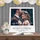 Welcome wedding guests to your ceremony or reception with an elegant custom photo 24"x24" square foam board sign. Picture and all text are simple to personalize. (IMAGE PLACEMENT TIP: An easy way to center a photo exactly how you want is to crop it before uploading to the Zazzle website.) The modern minimalist black and white design features one image of your choice, chic handwritten style script calligraphy, elegant vintage typography, and customizable messages that read "welcome to the wedding celebration of" and "thank you for sharing our joy." This wedding sign is a stylish way to share an engagement picture while adding a personalized touch to your special day decorations. Congratulations to the bride and groom!