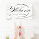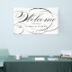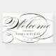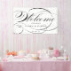Wedding Welcome banner with fancy script text. The word "welcome" is an IMAGE is printed in flat ink and cannot be edited. All other text can be fully edited. Pick your size and customize the text, or click "Customize further" to change the background color and font size or style.