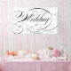 Unique Wedding Welcome banner with fancy script and curved text. The word "welcome" is an IMAGE printed in flat ink and cannot be edited. All other text can be fully edited. Click "Customize further" to change the background color and font size, curvature, or style.