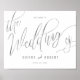 Modern Wedding Welcome poster with modern FAUX silver foil script text. The word "wedding" is an IMAGE produced to look like it has a metallic foil finish, but it is printed in flat ink and cannot be edited. It can be resized to fit your poster size, and all other text can be fully edited. Pick your size (shown on 10 x 8) and customize the text, fonts, colors and layout. Recommended semi-gloss or premium gloss finish.