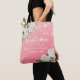 Wedding Favor Welcome and Thank You Gift Bags Templates - Elegant White lovely Watercolor Hydrangea Flowers and String Lights on Pink Gradient Background.