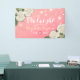 Wedding Welcome Banner Templates - Elegant White lovely Watercolor Hydrangea Flowers and String Lights on Pink Gradient Background.
