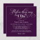 Elegant and chic wedding welcome party invitation features a calligraphy script heading : Before they say "I Do". Square design. Eggplant purple and white color scheme.