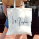these bags will be used as a thank you gift for a weekend trip for a sweet sixteen celebration. the lighter ink for the background letter is light enough to let the darker print of the name stand out.