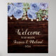 Wedding Welcome Rustic Wood Blue Floral String Poster