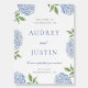 This beautiful design features blue hydrangea blooms and your custom text. Use the template form to add your information.