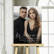 This custom wedding welcome sign features a photo template for uploading your desired photo in place of the sample image shown. Use an elegant engagement photo or something more casual if you prefer. Modern calligraphy script spells out the word "Welcome" in contemporary. Personalize the bride and groom's names and wedding date for a wedding welcome sign that is uniquely yours. This sign may be placed on an easel or hung on a doorway or wall.