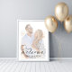 This design features a wedding photo welcome sign a wedding, minimalist, elegant, typography, black and white style, with calligraphy script, and welcome to our wedding theme, perfect wedding decor, or rehearsal dinner welcome, with a simple photo template.