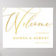 Wedding Welcome poster with modern FAUX gold foil script text. The word "welcome" is an IMAGE produced to look like it has a metallic foil finish, but it is printed in flat ink and cannot be edited. It can be resized to fit your poster size, and all other text can be fully edited. Pick your size (shown on 10 x 8) and customize the text, fonts, colors and layout. Recommended semi-gloss or premium gloss finish.