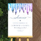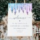 Wedding Welcome Sign Template Modern Floral Reception Ceremony Sign features elegant watercolor blue and purple flowers on a white background with your wedding welcome sign in elegant handwritten calligraphy script typography accented with a simple love heart. Perfect for the entrance to your wedding ceremony or reception. Designed for you by ©Evco Studio www.zazzle.com/store/evcostudio