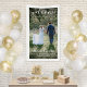 Welcome wedding guests to your ceremony or reception with an elegant custom photo vertical banner. Picture and all text are simple to personalize. (IMAGE PLACEMENT TIP: An easy way to center a photo exactly how you want is to crop it before uploading to the Zazzle website.) The modern minimalist black and white design features one image of your choice, chic handwritten style script calligraphy, elegant vintage typography, and customizable messages that read "welcome to our happily ever after" and "thank you for celebrating with us." This wedding sign is a stylish way to share an engagement picture while adding a customized touch to your special day decorations. Congratulations to the bride and groom! Example photo is by Tim Stagge (@tim_stagge) on Unsplash.
