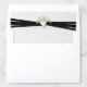 Gold heart with baby's breath bouquet and black ribbon border on elegant white embossed-like design.