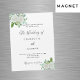 A classic, modern white background. Decorated with white roses, flowers and greenery. Personalize and add your names and the details.