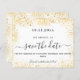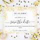 A modern and elegant Save the Date for a wedding. A white background decorated with faux gold glitter. sparkles. Personalize and add a date and names. The text: Save the Date is written with a large trendy hand lettered style script.