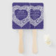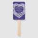 Wedding ceremony programme fan is part of the white lace heart on navy blue faux graphic fabric wedding set. Original lace drawing and design by www.mylittleedenweddings.com on zazzle.