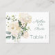 Wedding Place card - This design features Elegant white cream roses and hydrangea contrasted with green leaves