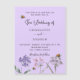 A violet background. Decorated with bees and painted wildflowers in violet and pink. Personalize and add your names and the details.