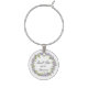 This wedding wine glass charm set is shown in a white background color with a lovely lavender wreath print with the text bride & groom names, date and forever in the black color.
