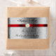 Wedding Wine Label with Red Ribbon on Silver