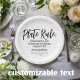 Introducing the Square Paper Plate from the Elegance Collection – a playfully humorous addition to your wedding festivities. Designed with a clean and modern aesthetic, this square paper plate features a lighthearted and customizable inscription: "Plate rule: If it looks delicious, eat it. If it looks even more delicious, Instagram it first!" The design showcases a white background with elegant black text.