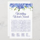 This lovely blue hydrangeas Wedding Word Search wedding shower game sheet is elegant and charming - perfect for any garden, botanical, rustic, romantic, floral, formal or vintage wedding. Its exquisite combination of graceful multi-hued blue hydrangeas and wispy greenery is flowy, delicate, and beautiful. This fun and easy game is sure to bring lots of laughter to any bridal shower! You'll be amazed at how many words people find and at who finishes first.