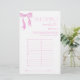 Designed with an elegant pink watercolor bow, this game brings an interactive energy to the celebration, making it perfect for bridal brunches, afternoon teas, or cocktail-style gatherings. Whether played individually or in teams, it’s a delightful way to engage guests and keep the festivities flowing.