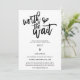 For when circumstances mean that sadly it has become necessary for you to change the date of your wedding, this is a convenient way to let your guests know your change of plans and new date as soon as possible. This typographical design has elegant black set script at the top Worth the Wait with a heart motif. The rest of the text you can easily personalise. Text and background colors on both sides can be changed if you wish via Customize Further option.