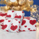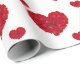 This wedding wrapping paper shown with a lovely red roses heart shape print on a white background.