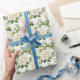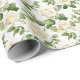 Wrapping paper is shown with a lovely white roses floral print.
