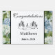Yard sign perfect for your wedding reception celebration, shown in white with a hydrangea accent strips.