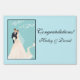 This yard sign is perfect for your wedding reception celebration,shown with a Aqua Blue background color and a bride and groom art print.