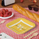 Wedding Yellow & White Chic Script Monogram Name Paper Plates