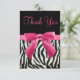 Elegant custom Thank You wedding flat cards with a beautiful black and white zebra printed fake fur stripes pattern and a cute hot pink printed bow and ribbon. These classy glamorous invites are decorated both sides. Girly, chic, trendy, modern invitations. PLEASE NOTE : ALL INVITES ON ZAZZLE HAVE FLAT PRINTED IMAGES. Text, font and color of font can all be customized. If you need assistance customizing your product please contact me through my store. I will be happy to help.