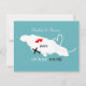 A fun save the date for couples getting married in Jamaica, with a white silhouette map of Jamaica on teal with sweet red love hearts and so easy to customize with your personal names and message