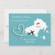A fun save the date for couples getting married in Skiathos with a white silhouette map on teal with sweet red love hearts and so easy to customize with your personal names and message