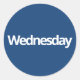 Wednesday day planning supplies simple navy blue Classic Round Sticker with white "Wednesday" script. Use this for planning, office or school supplies, or to remind people (along with other number stickers) of the day. Help your child learn the days of the week, or help your loved ones with memory problems remember the day. You can stick these stickers on planners, laptops, phones, clothing or anything else.