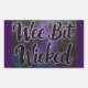 This sticker features a bold, elegant script over a dark, smoky background with purple and blue hues, evoking a mysterious, playful vibe. Finished as an oil paint art print.