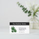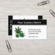 Three bright leaves on a gradient green. Change information on front and back. Three initials on either side on back are those of the business name or you can just delete this area and leave it blank. It looks just as good.