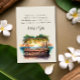 Sunset coastal wedding welcome bag card with editable poem. This charming design features a watercolor scene of a wooden beach bar or tiki bar draped with fairy lights and palm leaves, overlooking the ocean at sunset. Perfect for a casual or boho beach wedding, coastal chic or classy beach resort destination wedding. Background and text have a natural and brown color palette, which you are welcome to change in the design tool. Co-ordinating wedding stationery and day of event decor can be found in our Sunset Beach Wedding collection,
