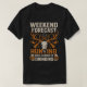 Get ready for the weekend with this bold and humorous hunting-themed t-shirt! Featuring the phrase "WEEKEND FORECAST: HUNTING WITH A CHANCE OF DRINKING," this rugged design showcases a striking deer skull with antlers, crossed rifles, and a target symbol—perfect for dedicated hunters. The addition of two beer mugs adds a fun twist, making it the ideal shirt for those who enjoy mixing outdoor adventures with good times. Printed in warm orange and beige tones on a deep black background, this high-contrast design stands out at the hunting lodge, backyard BBQ, or casual gatherings. It’s a must-have for outdoor enthusiasts who appreciate the thrill of the hunt and the joy of celebration!