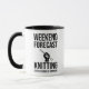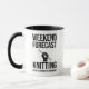 Weekend Forecast – Knitting (With A Chance Of Drinking). This funny quote knitting accessory would be great for the knitter in your life. Perfect for men & women who love to knit & craft and love yarn (and maybe a glass of wine)! If knitting is your hobby, you’re a yarn lover and you love crafting with knitting needles and balls of yarn, then this funny saying knitter design is for you!