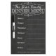 An old fashioned chalk board style weekly dinner planner, to help keep track of the week's dinners. Click "personalize it" to replace the name on the board with your family name. Use with a dry-erase white marker or white dry-erase crayon, and enjoy your dry erase chalk board dinner menu!